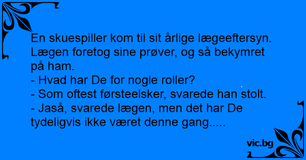 En skuespiller kom til sit årlige lægeeftersyn. Lægen foretog sine prøver, og så bekymret på ham.