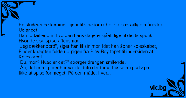 "Ja og nej," svarer moderen. "Jeg har tabt fem kilo, men din far har