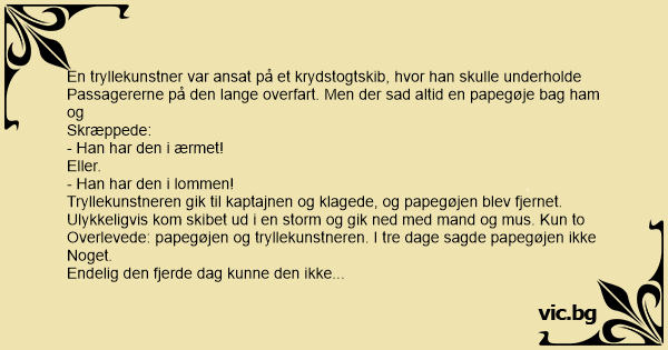 Tryllekunstneren gik til kaptajnen og klagede, og papegøjen blev fjernet.