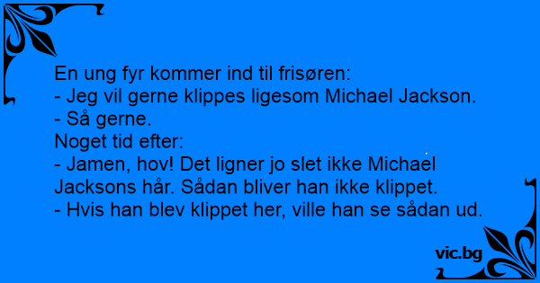 - Jamen, hov! Det ligner jo slет ikke Michael Jacksons hår. Sådan bliver han ikke klippet.