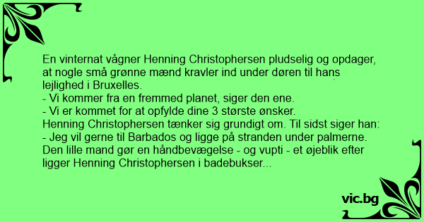 En vinternat vågner Henning Christophersen pludselig og opdager, at nogle små grønne mænd kravler ind under døren til hans lejlighed i Bruxelles.