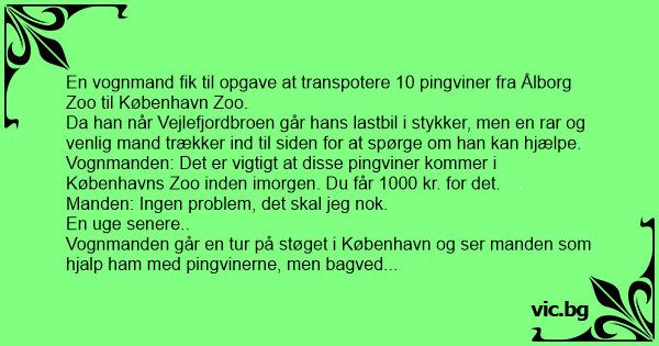 Vognmanden: Det er vigtigt at disse pingviner kommer i Københavns Zoo inden imorgen. Du får 1000 kr. for det.