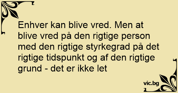 Enhver kan blive vred. Men at blive vred på den rigtige person med den rigtige styrkegrad på det rigtige tidspunkt og af den rigtige grund - det er ikke let