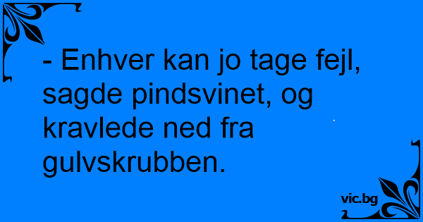 - Enhver kan jo tage fejl, sagde pindsvinet, og kravlede ned fra gulvskrubben.