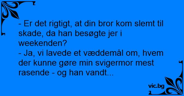 - Ja, vi lavede et væddemål om, hvem der kunne gøre min svigermor mest rasende - og han vandt...