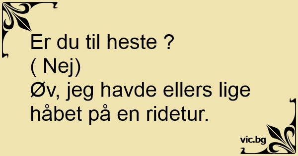 Er du til heste ? ( Nej)...