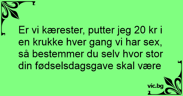 Er vi kærester, putter jeg 20 kr i en krukke hver gang vi har sеx, så bestemmer du selv hvor stor din fødselsdagsgave skal være