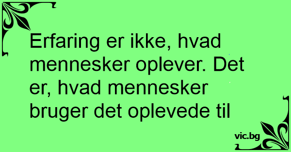 Erfaring er ikke, hvad mennesker oplever. Det er, hvad mennesker bruger det oplevede til