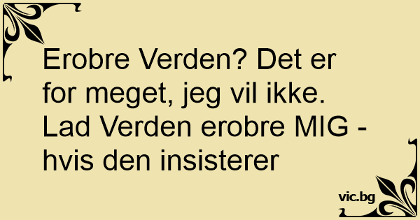 Erobre Verden? Det er for meget, jeg vil ikke. Lad Verden erobre MIG - hvis den insisterer
