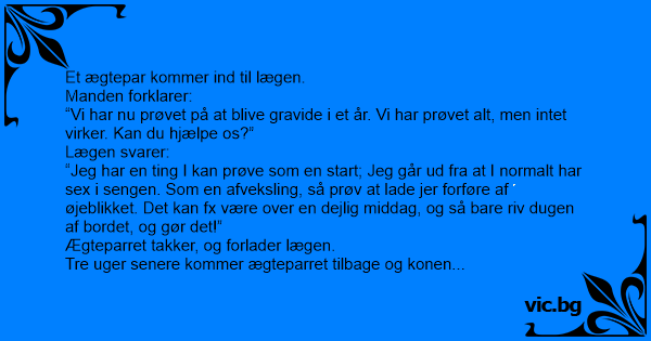 Tre uger senere kommer ægteparret tilbage og konen får lavet en graviditetstest.