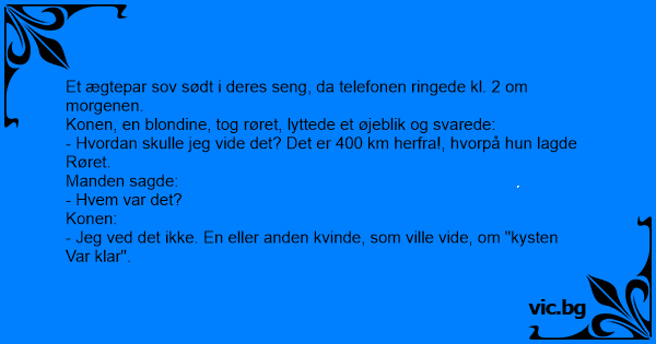 - Hvordan skulle jeg vide det? Det er 400 km herfra!, hvorpå hun lagde