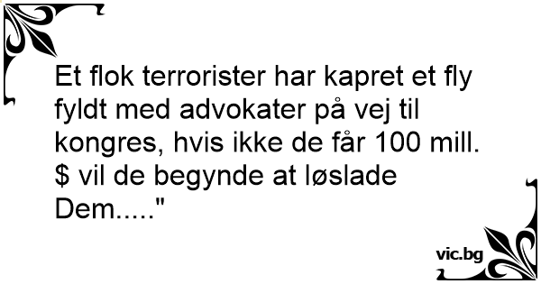 Et flok terrorister har kapret et fly fyldt med advokater på vej til kongres, hvis ikke de får 100 mill. $ vil de begynde at løslade