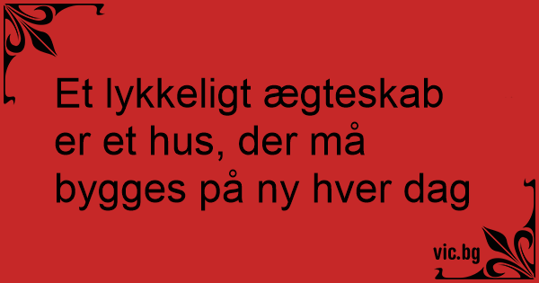 Et lykkeligt ægteskab er et hus, der må bygges på ny hver dag