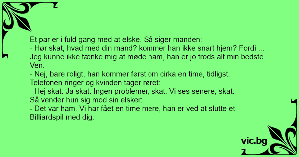- Hør skat, hvad med din mand? kommer han ikke snart hjem? Fordi ...