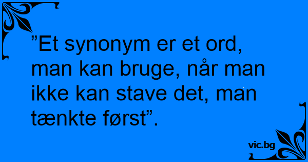 ”Et synonym er et ord, man kan bruge, når man ikke kan stave det, man tænkte først”.