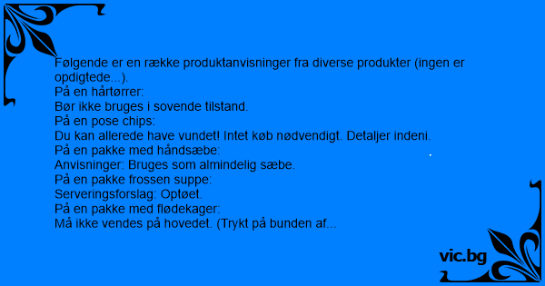 Følgende er en række produktanvisninger fra diverse produkter (ingen er opdigtede...).