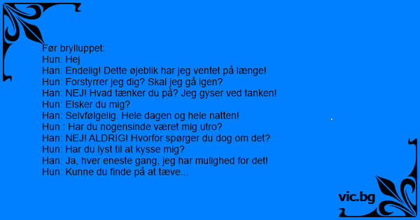 Før brylluppet: Hun: Hej...