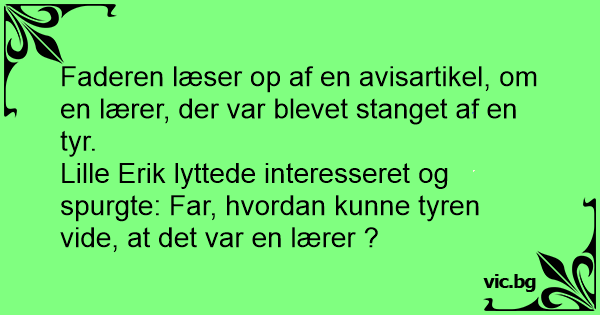 Lille Erik lyttede interesseret og spurgte: Far, hvordan kunne tyren vide, at det var en lærer ?