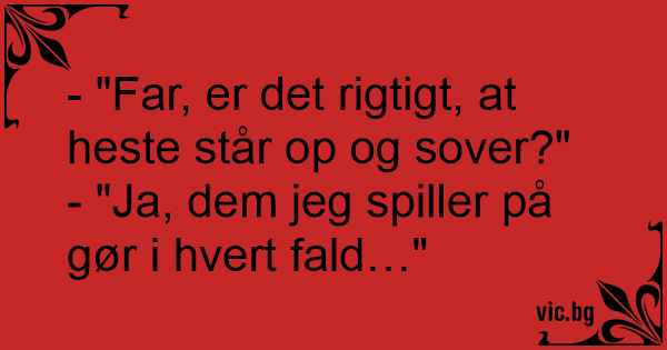 - "Far, er det rigtigt, at heste står op og sover?"