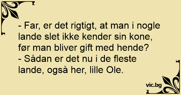 - Far, er det rigtigt, at man i nogle lande slет ikke kender sin kone, før man bliver gift med hende?