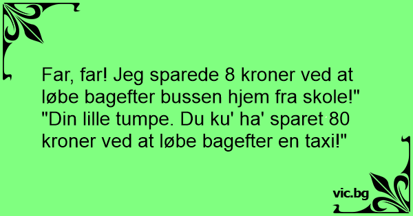 Far, far! Jeg sparede 8 kroner ved at løbe bagefter bussen hjem fra skole!"