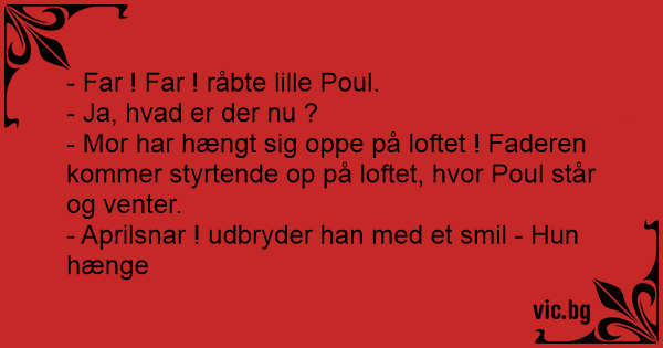 - Mor har hængt sig oppe på loftet ! Faderen kommer styrtende op på loftet, hvor Poul står og venter.