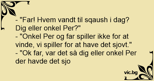 - "Far! Hvem vandt til sqaush i dag? Dig eller onkel Per?"