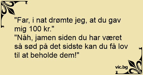 "Far, i nat drømte jeg, at du gav mig 100 kr."