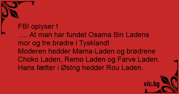 Moderen hedder Mama-Laden og brødrene Choko Laden, Remo Laden og Farve Laden. Hans fætter i Østrig hedder Rou Laden.