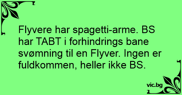 Flyvere har spagetti-arme. BS har TABT i forhindrings bane svømning til en Flyver. Ingen er fuldkommen, heller ikke BS.