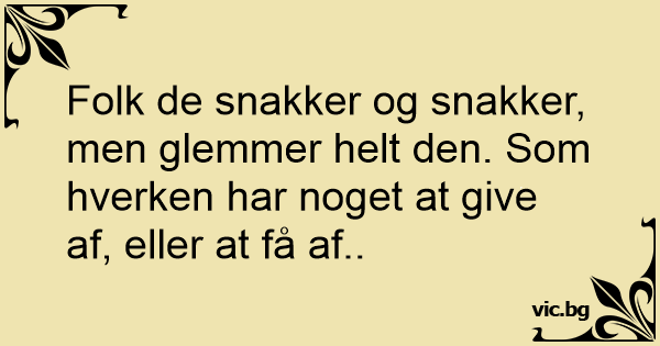 Folk de snakker og snakker, men glemmer helt den. Som hverken har noget at give af, eller at få af..