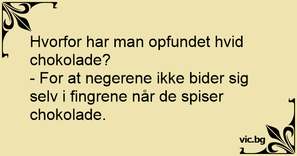 – Varför säljs så mycket vit choklad i Afrika? – För att de inte skall bita sig i fingrarna.
