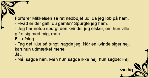 - Nå, sagde han. Men hun sagde ikke nej, hun sagde: Føj