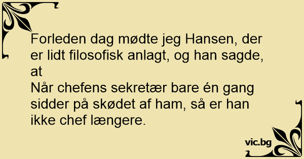 Når chefens sekretær bare én gang sidder på skødet af ham, så er han ikke chef længere.