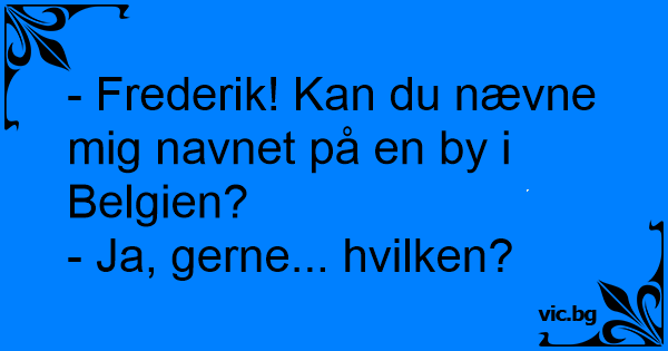 - Frederik! Kan du nævne mig navnet på en by i Belgien?