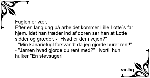 - "Jamen hvad gjorde du rent med?" Hvortil hun hulker "En støvsuger!"