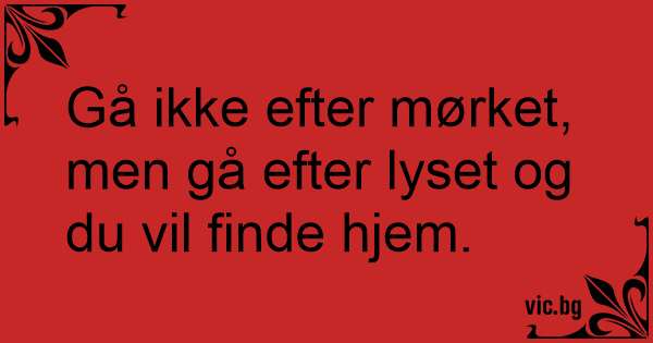 Gå ikke efter mørket, men gå efter lyset og du vil finde hjem.