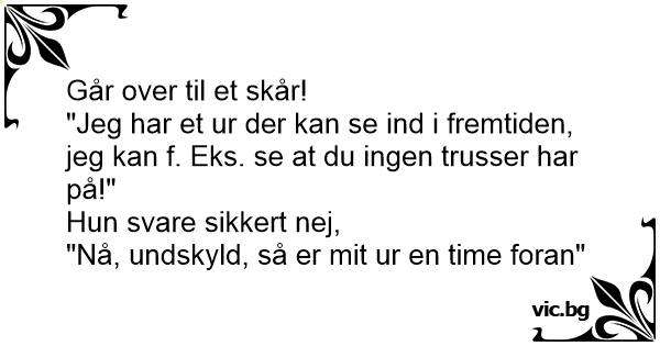 "Jeg har et ur der kan se ind i fremtiden, jeg kan f. Eks. se at du ingen trusser har på!"
