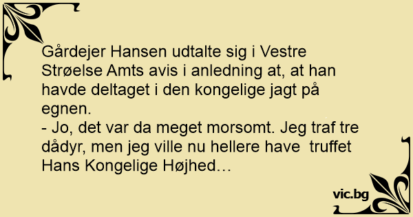 Gårdejer Hansen udtalte sig i Vestre Strøelse Amts avis i anledning at, at han havde deltaget i den kongelige jagt på egnen.