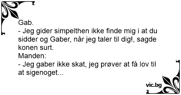 - Jeg gider simpelthen ikke finde mig i at du sidder og Gaber, når jeg taler til dig!, sagde konen surt.