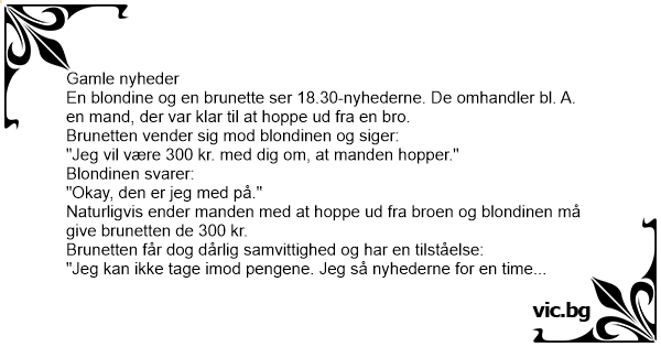 Naturligvis ender manden med at hoppe ud fra broen og blondinen må give brunetten de 300 kr.
