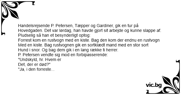 Handelsrejsende P. Petersen, Tæpper og Gardiner, gik en tur på
