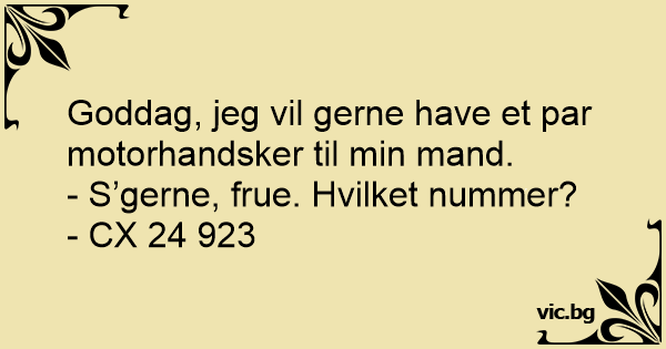 Goddag, jeg vil gerne have et par motorhandsker til min mand.