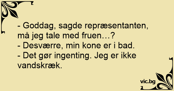 - Goddag, sagde repræsentanten, må jeg tale med fruen…?