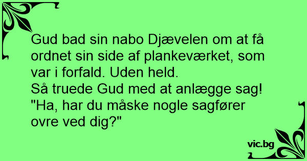 Gud bad sin nаво Djævelen om at få ordnet sin side af plankeværket, som var i forfald. Uden held.