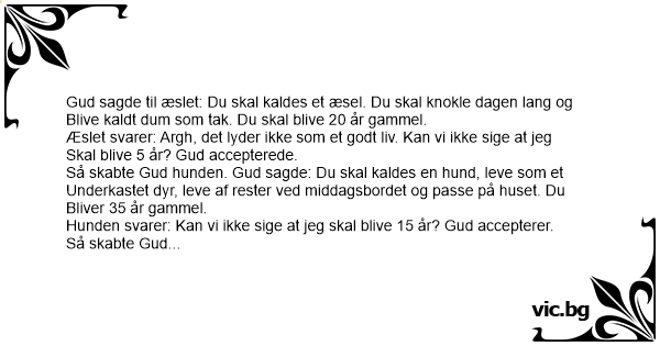 Gud sagde til æslet: Du skal kaldes et æsel. Du skal knokle dagen lang og