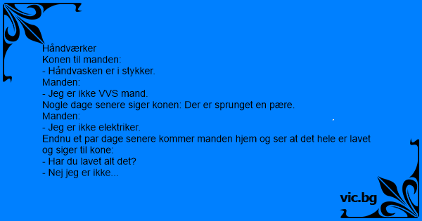 Endnu et par dage senere kommer manden hjem og ser at det hele er lavet og siger til kone: