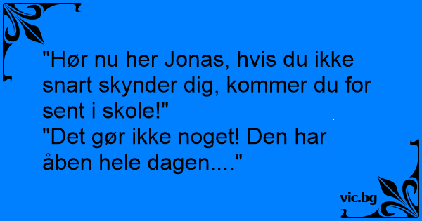 "Hør nu her Jonas, hvis du ikke snart skynder dig, kommer du for sent i skole!"