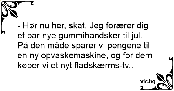 - Hør nu her, skat. Jeg forærer dig et par nye gummihandsker til jul.
