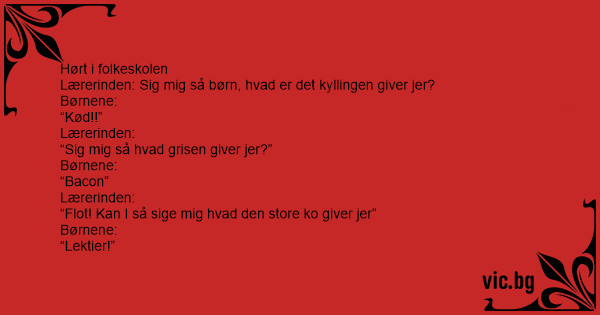 Lærerinden: Sig mig så børn, hvad er det kyllingen giver jer?